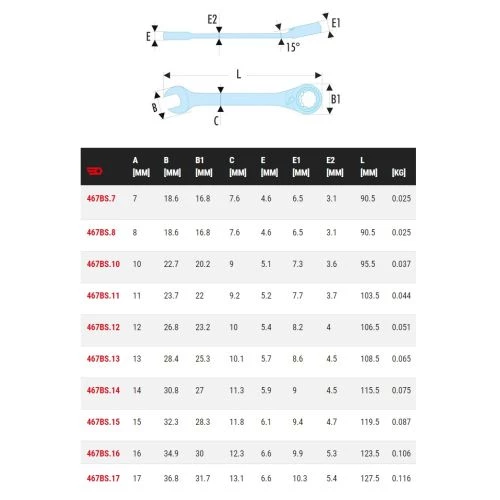 Cette clé mixte à cliquet courte métriques 467BS dispose d’un manche extra-court pour mieux accéder aux zones très encombrées.