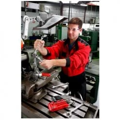 Ces clés à fourches micromécanique ayant un manche court et de grandes finesses des têtes sont utilisables même dans des espaces très réduits. Les têtes inclinées à 15° et 75° facilitent l’intervention sur des écrous inaccessibles avec une clé standard.