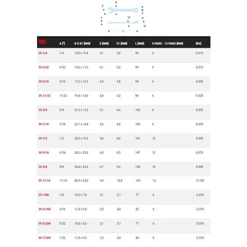 - Dimensions en pouces : de 1/8″ à 11/16″