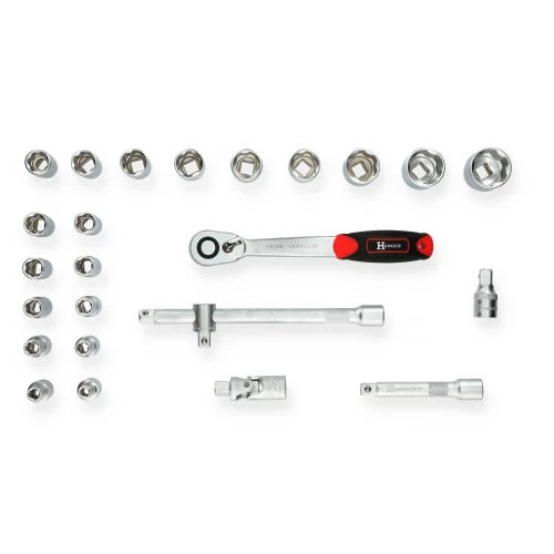 - 19 douilles ½’’ 6 pans : 8 – 9 – 10 – 11 – 12 – 13 – 14 – 15 – 16 – 17 – 18 – 19 – 21 – 22 – 23 – 24 – 27 – 30 – 32 mm