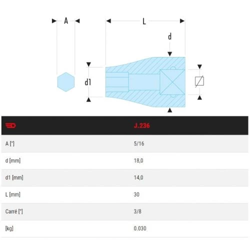 - Pour embouts série 2 : 5/16 » – 7,94 mm
