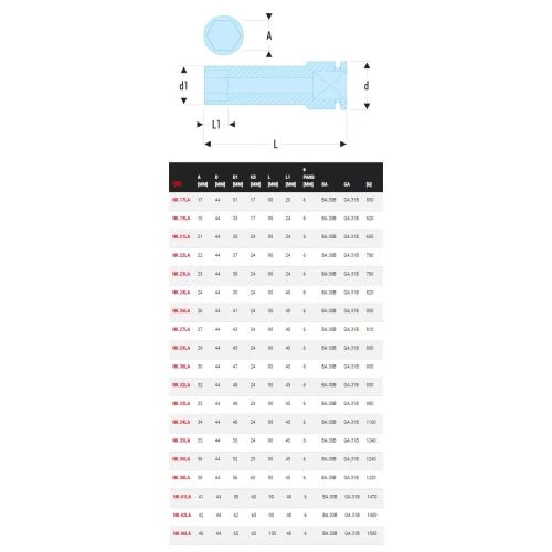 | Diamètre (mm) | 17, 19, 21, 22, 23, 24, 26, 27, 29, 30, 32, 33, 34, 35, 36, 38, 41, 42, 46 |
