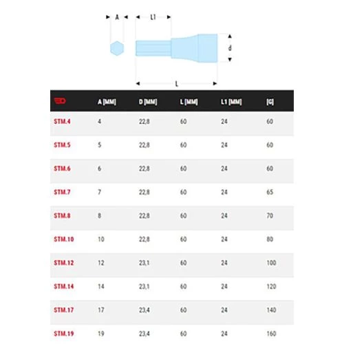 - Disponible en jeu en coffret Réf STM.J9A (5 --> 19 mm)