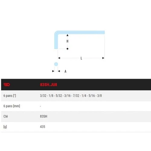 - Dimensions clés mâles : 3/32 – 1/8 – 5/32 – 3/16 – 7/32 – 1/4 – 5/16 – 3/8 »