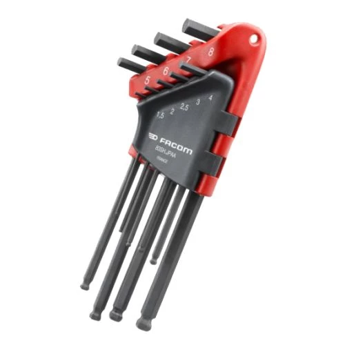 Ce jeu de 9 clés mâles coudées 6 pans en étui 83SH.JPAA de Facom sont présentées dans un étui compact à volet rabattable permettant une sélection rapide de la dimension souhaitée.
