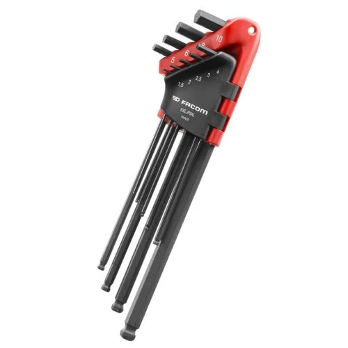 Ce jeu de 9 clés mâles coudées 6 pans 83S.JP9AL de Facom sont présentées dans un étui compact à volet rabattable permettant une sélection rapide de la dimension souhaitée.