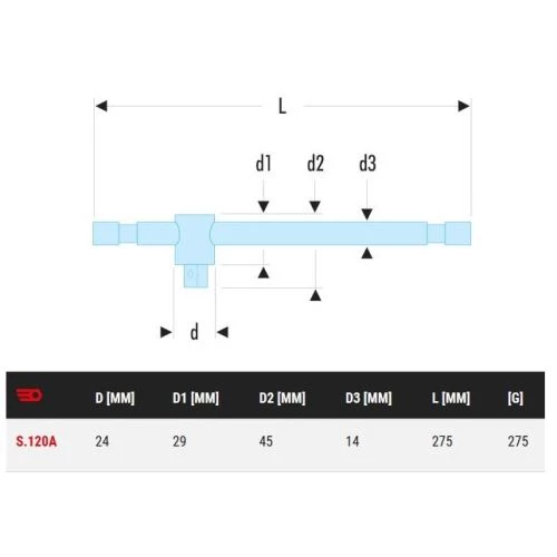 La tête de cette poignée 1/2 » de Facom est dotée d’un frein qui maintient la tige coulissante et permet ainsi de l’utiliser comme une clé en T ou en L.