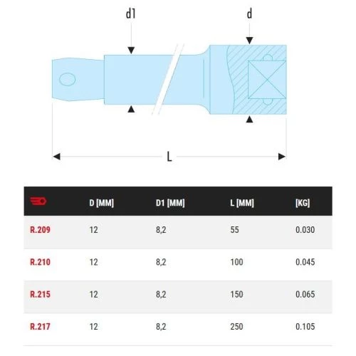 Utilisation avec douilles carré 1/4 » ou embouts série 1 (1/4 » – 6,35 mm) grâce à la douille porte-embout R.235.