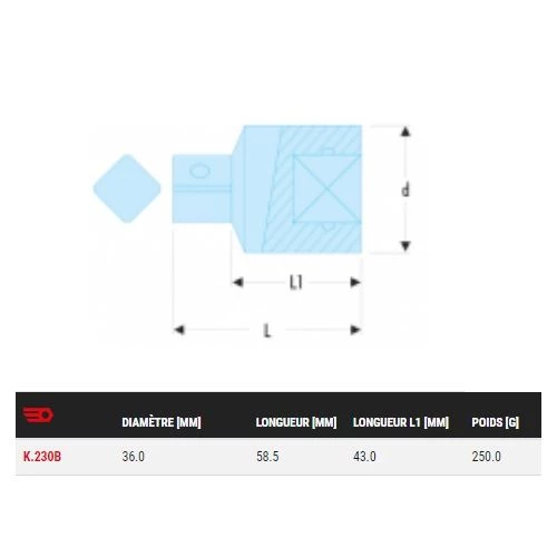 - Embout carré 1/2 » interchangeable (Réf K.230B1)