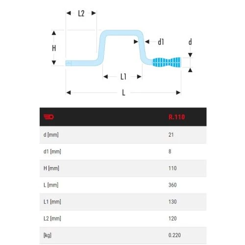 Ce vilebrequin 1/4 » R.110 peut être utilisé directement avec des douilles carré 1/4 » ou des embouts série 1 de type 1/4 » à l’aide d’un porte-embout R.235.